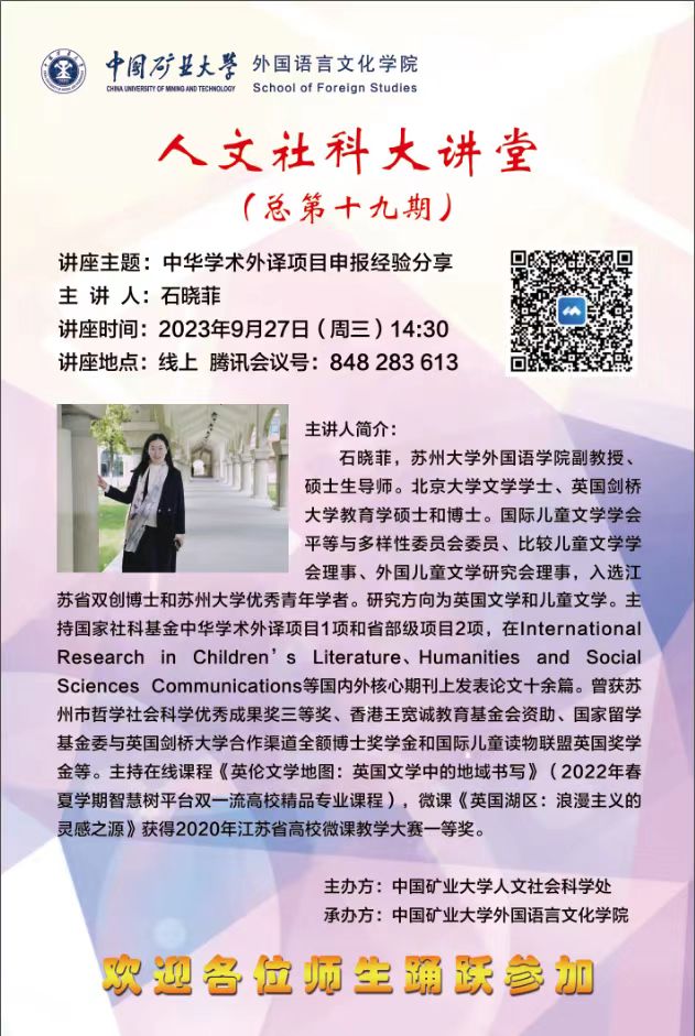下一条:【人文大讲堂】(2023-12)——漫谈语言学科研项目申报及论文发表